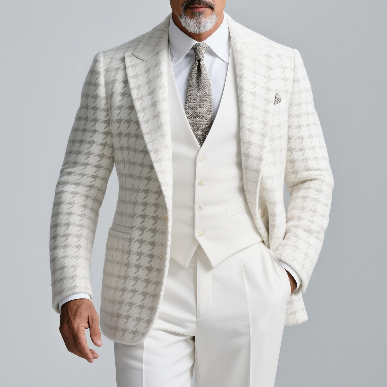 Men's Solid Knitted Peak Lapel Two Button Long Sleeve Jacket