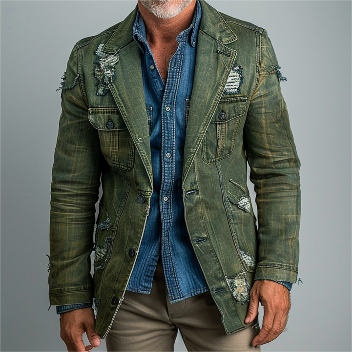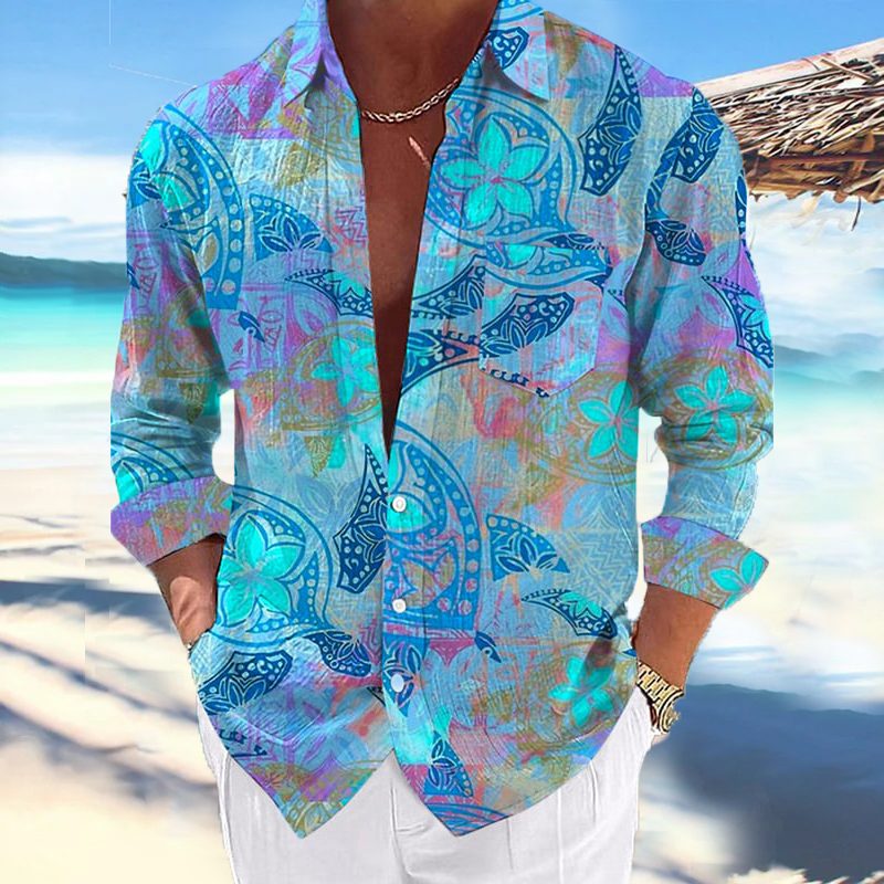 Men's Vintage Floral Pattern Pocket Single Breasted Shirt