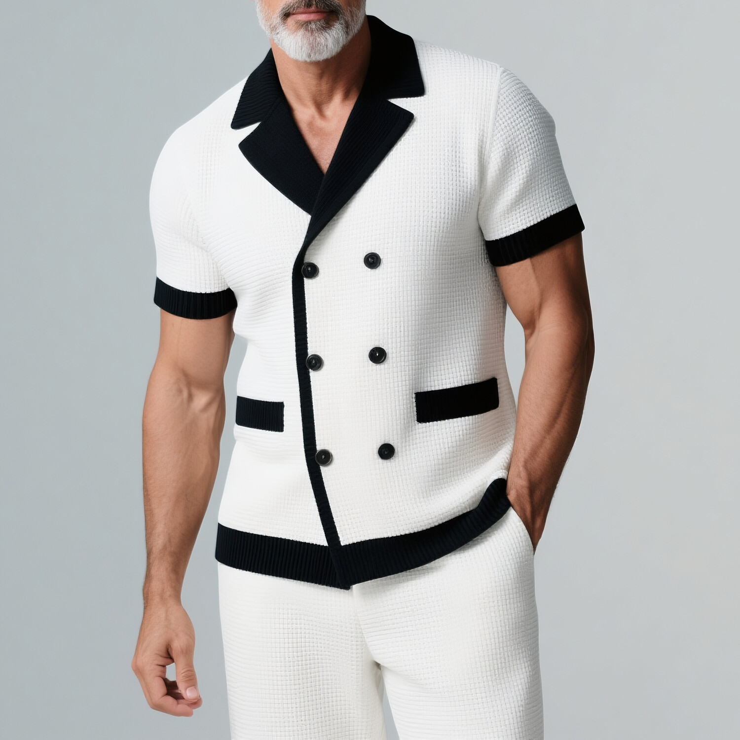 Men's PU Leather Lapel Single Breasted Contrast Binding Blazer