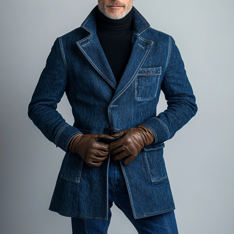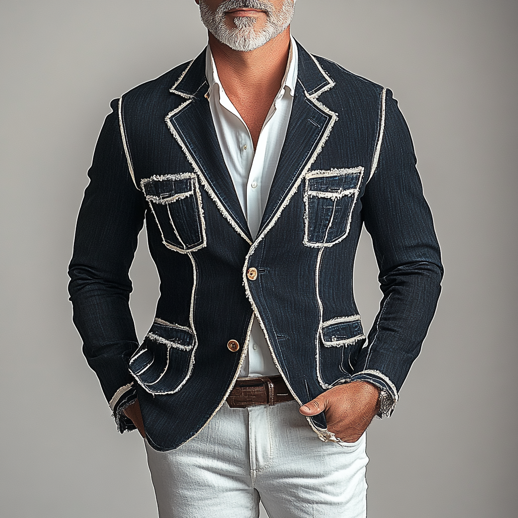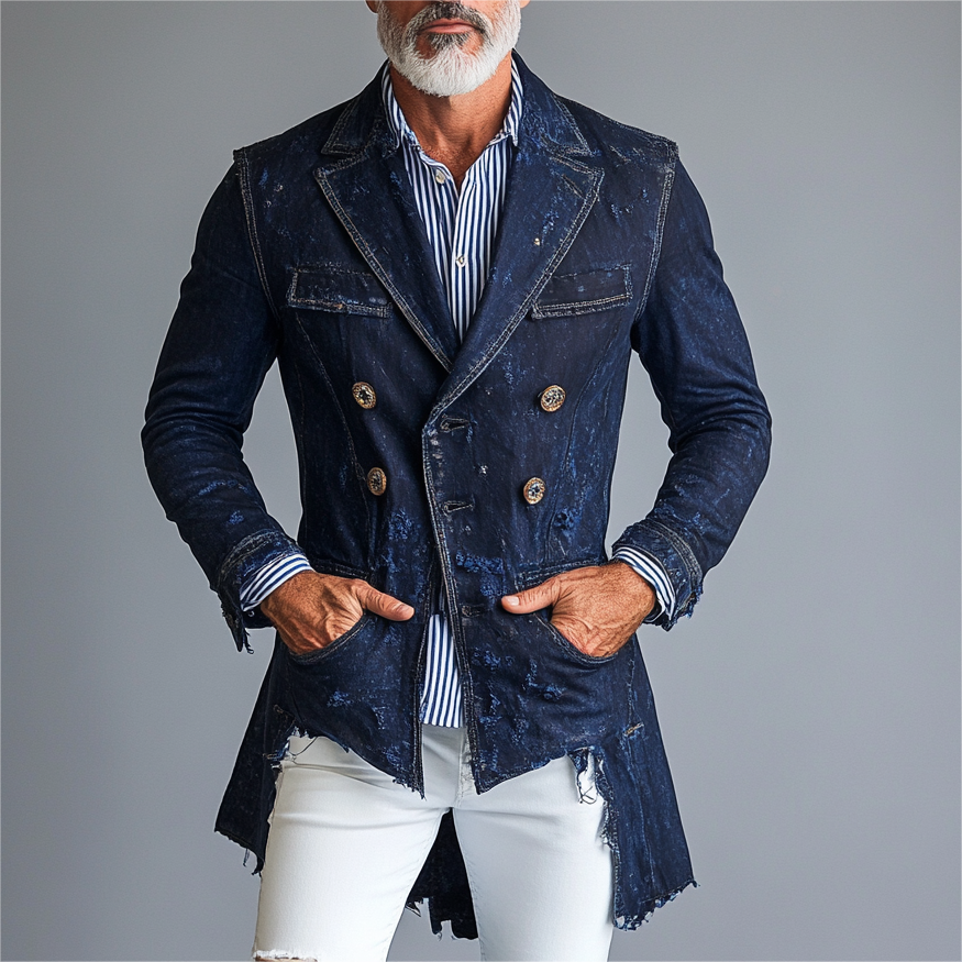 Men's Vintage Raw Edge Dots Denim Blazer