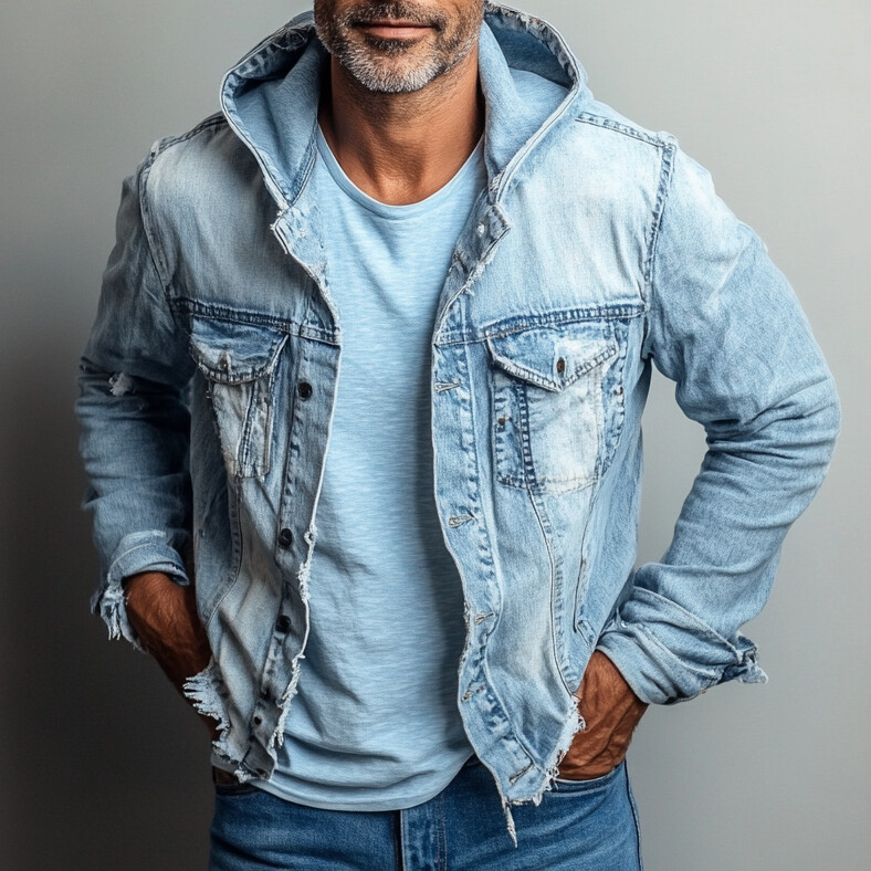 Men's Denim Button Long Sleeve Hooded Jacket