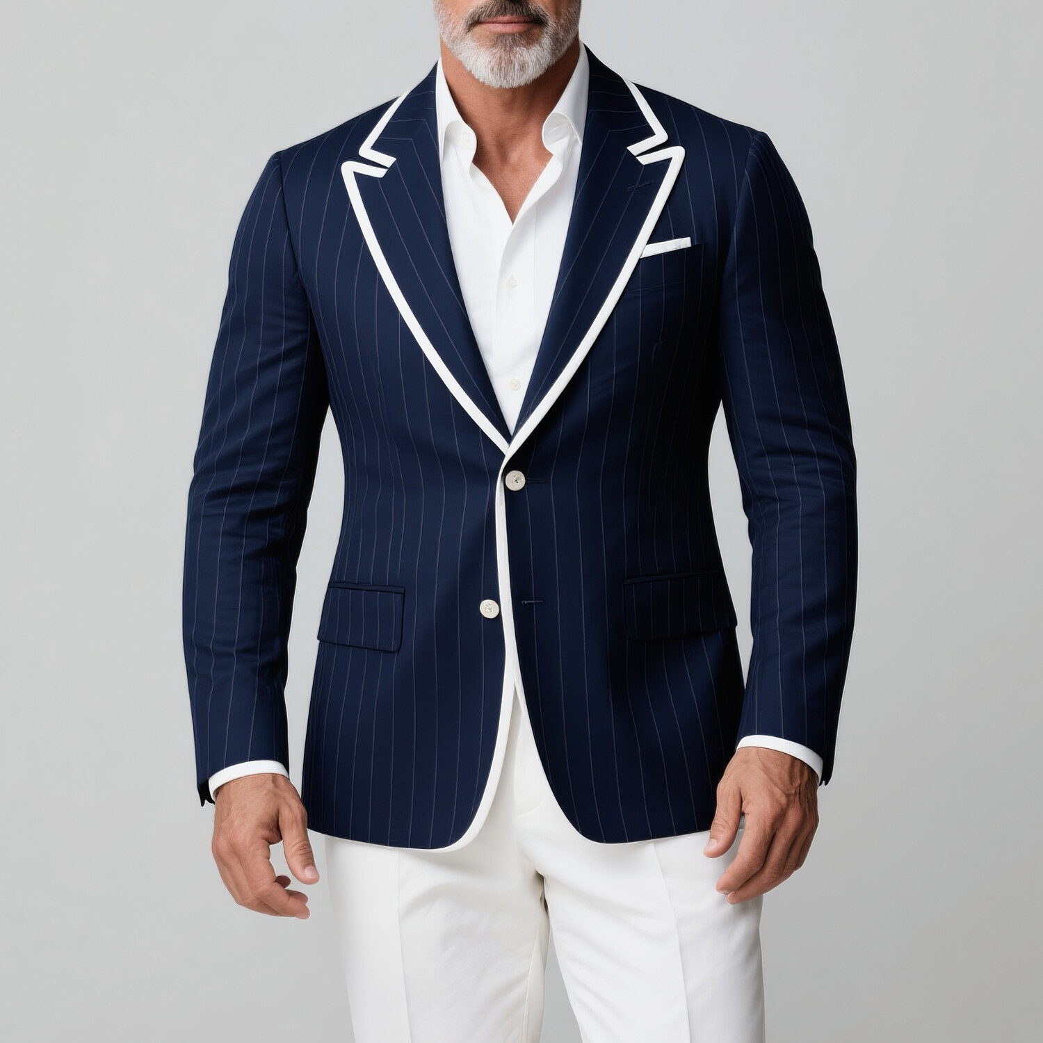 Men's PU Leather Lapel Single Breasted Contrast Binding Blazer