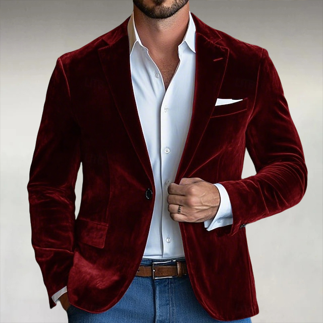 Men's Vintage Raw Edge Dots Denim Blazer
