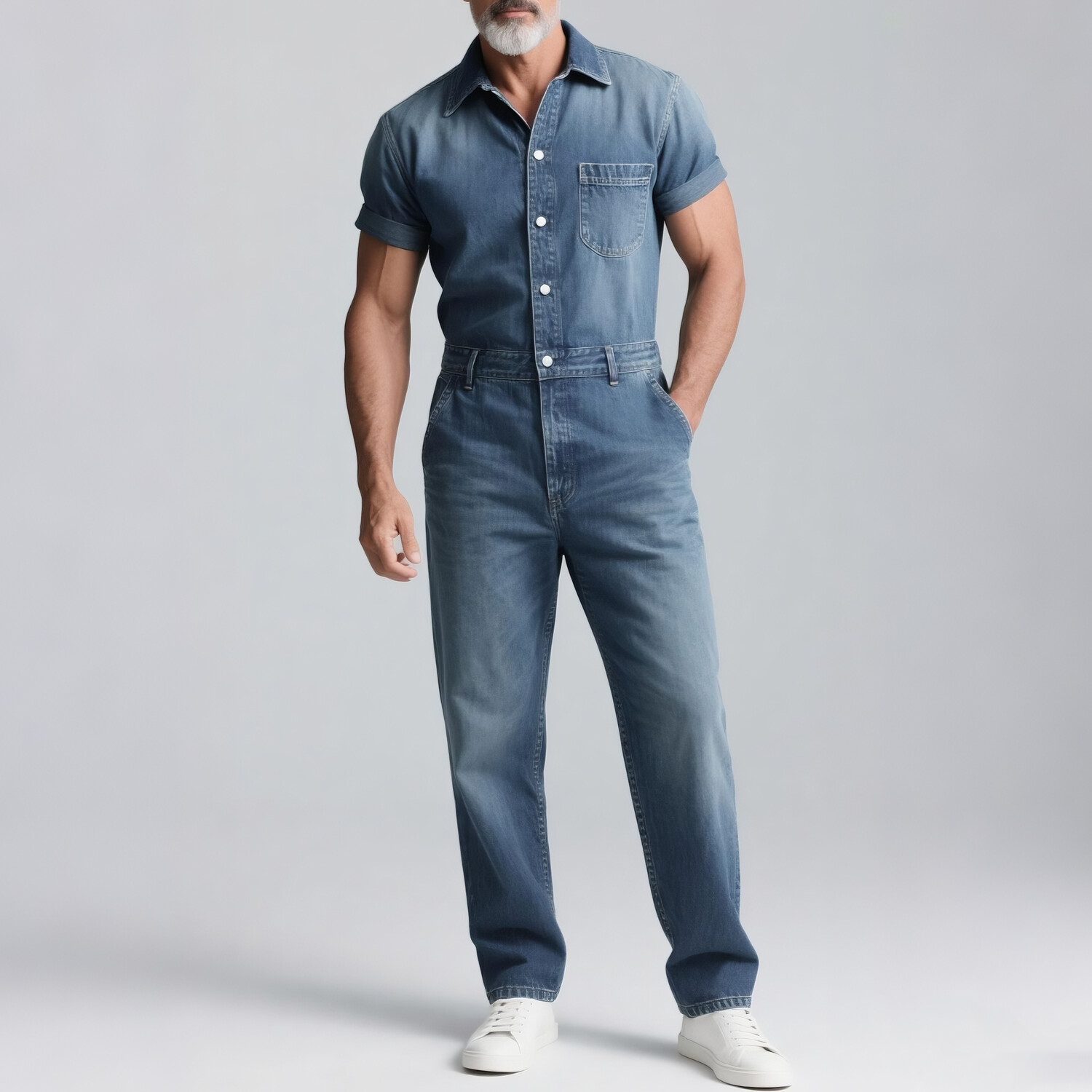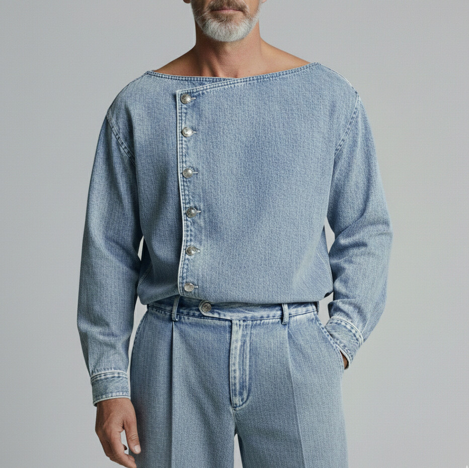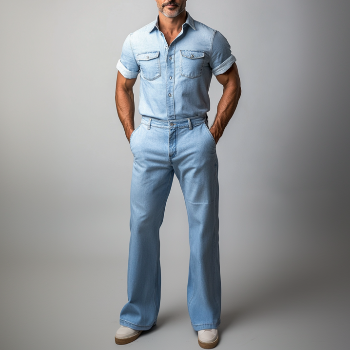 Men's Denim Short Sleeve Button Shirt & Jeans 2Pcs Set