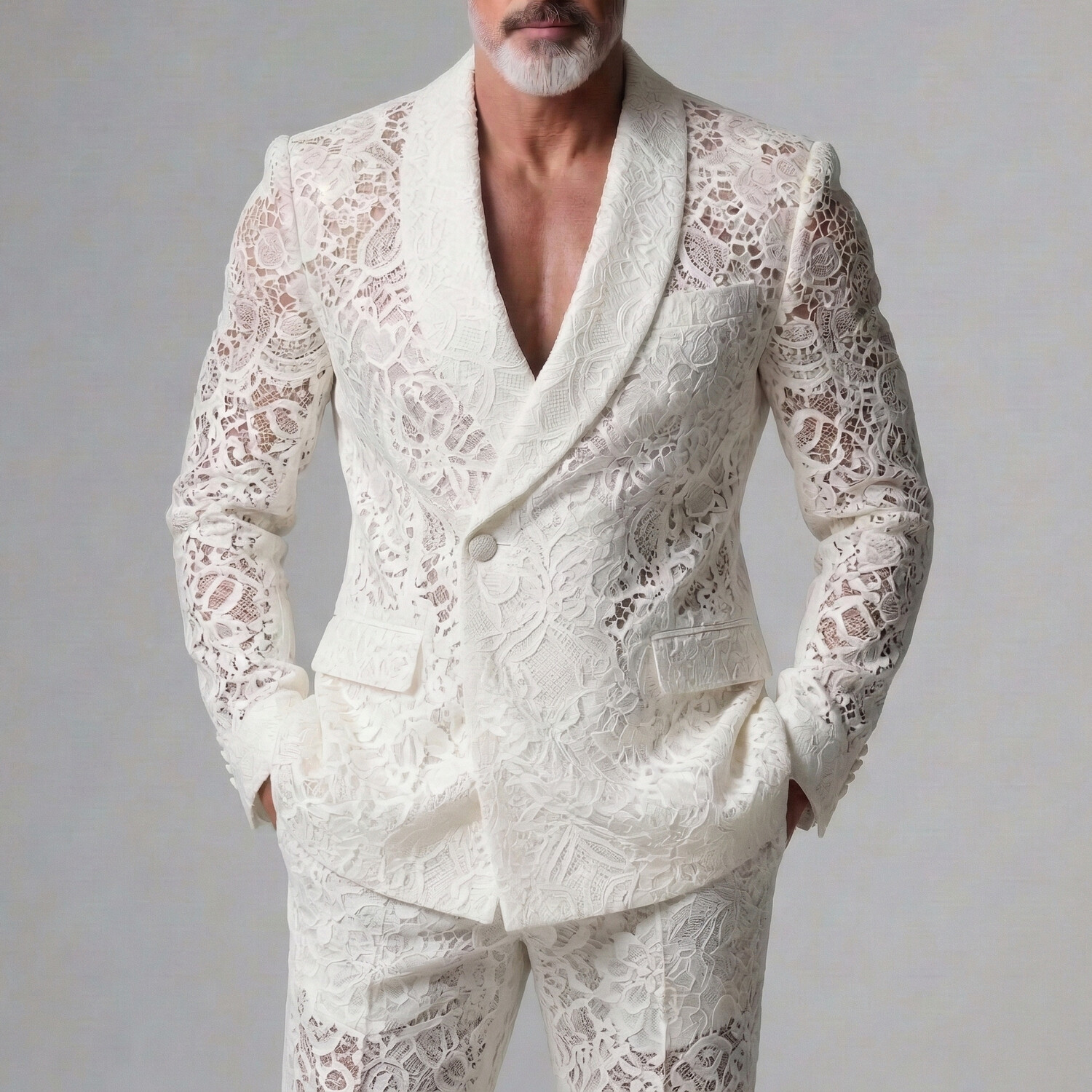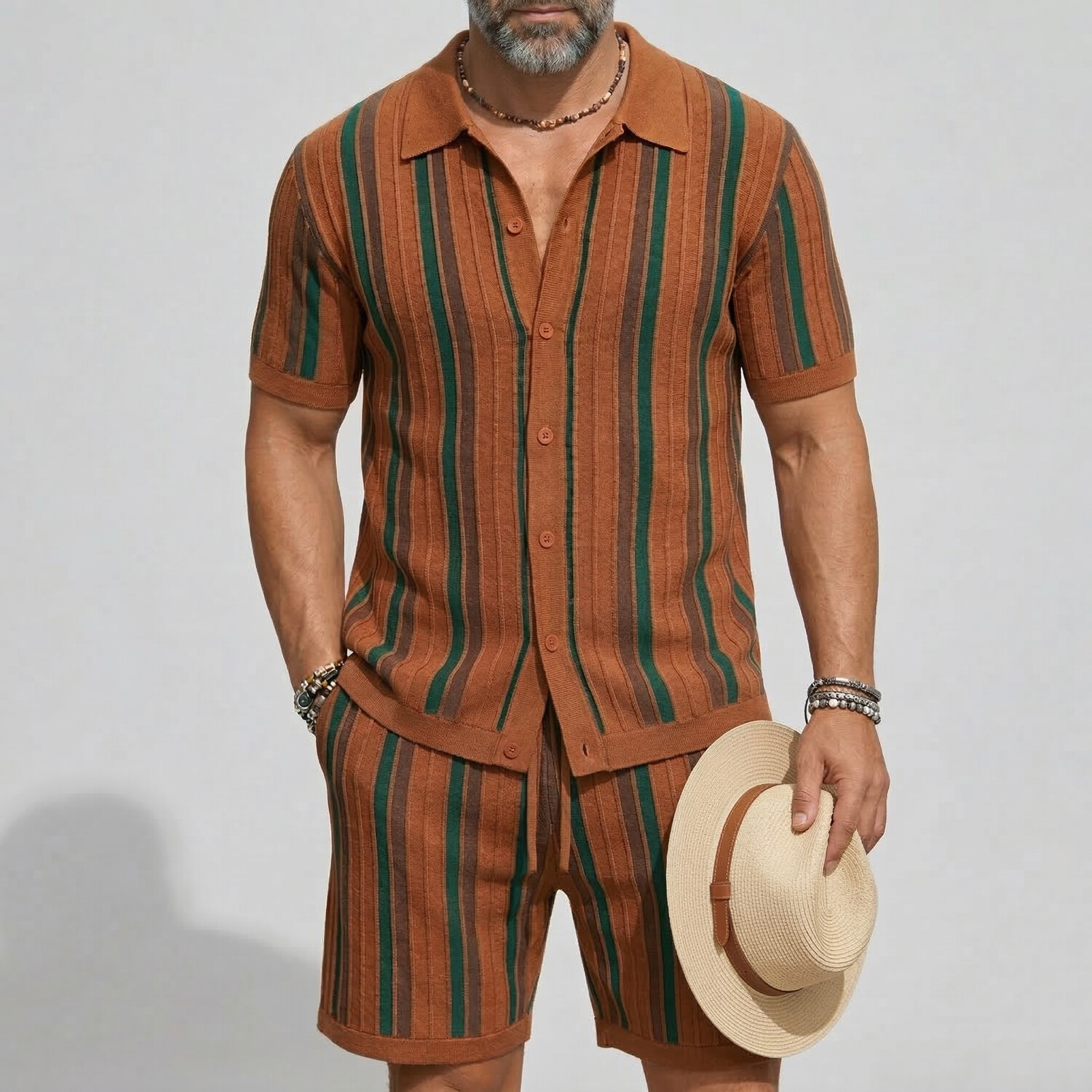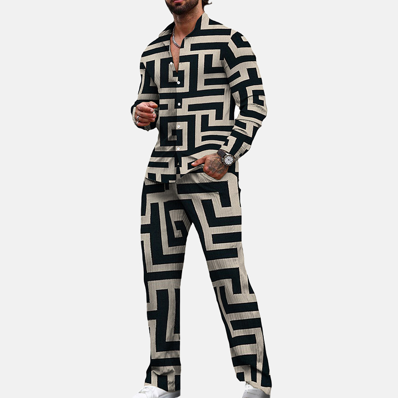Men's Fashion Geo Pattern Long Sleeve Shirt & Pants 2Pcs Set