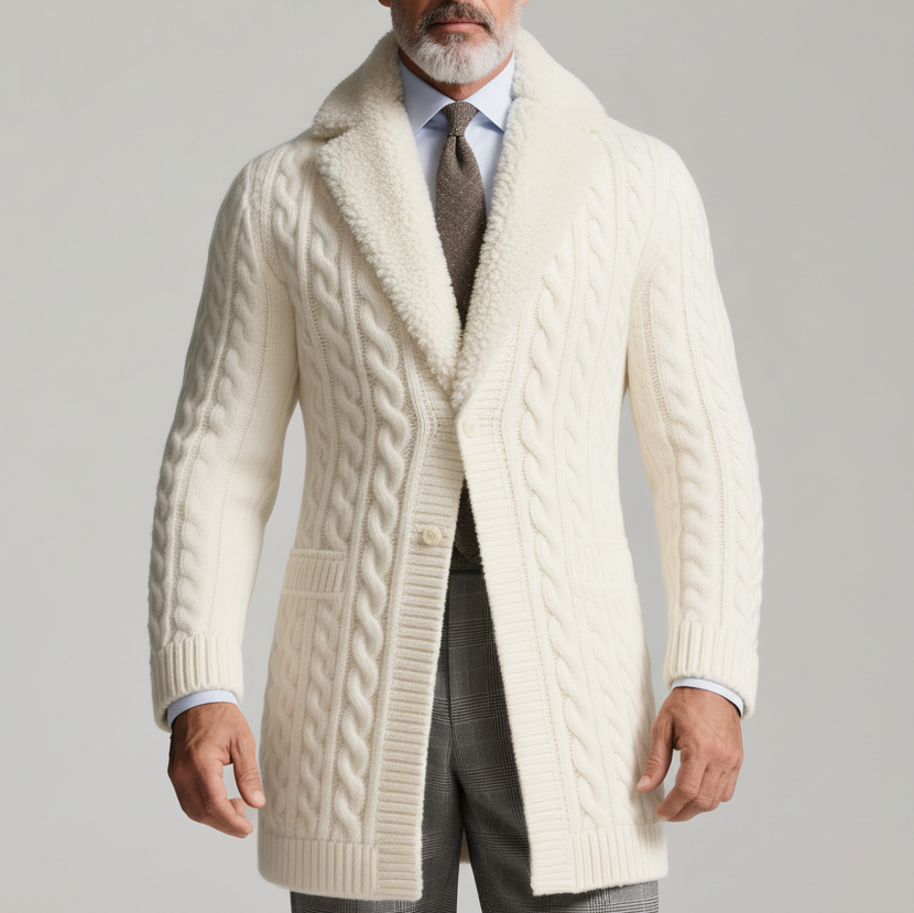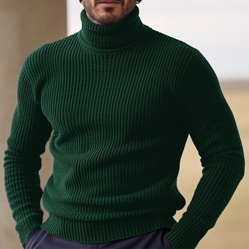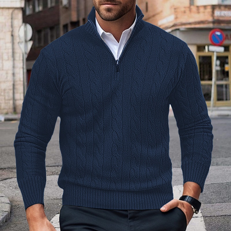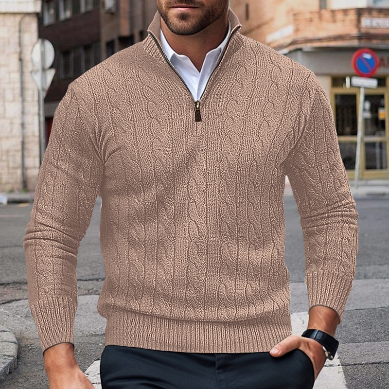 Men's Daily Stand Collar Half Zip Cable Knit Long Sleeve Sweater