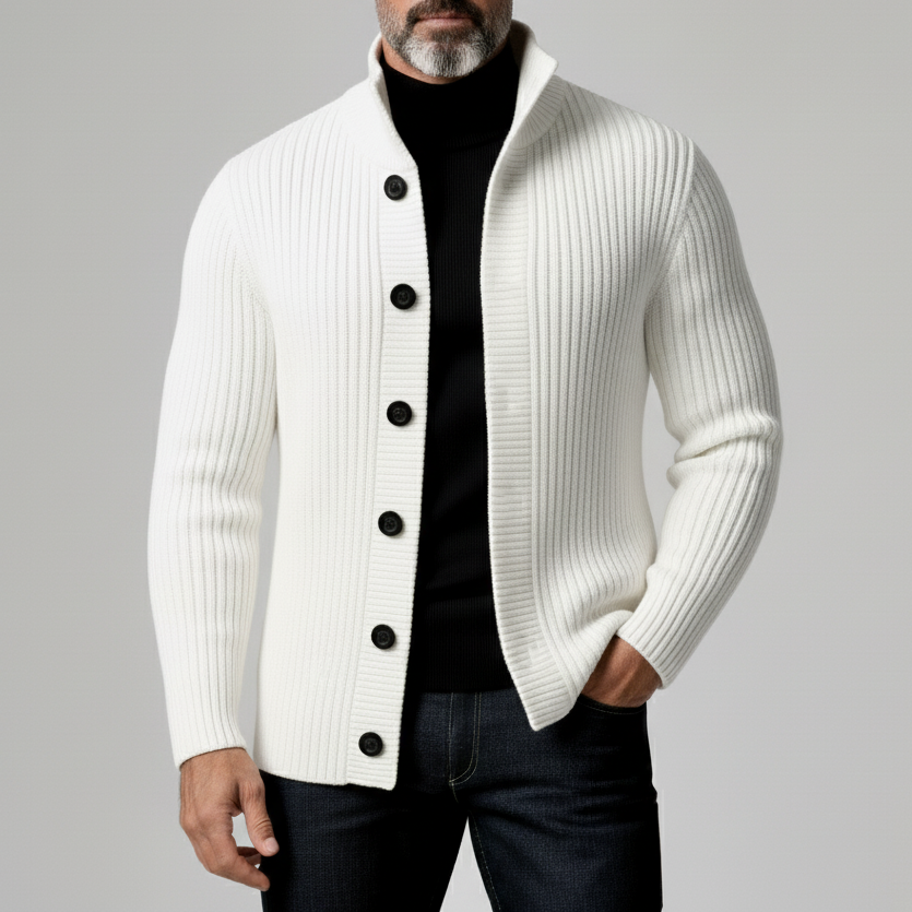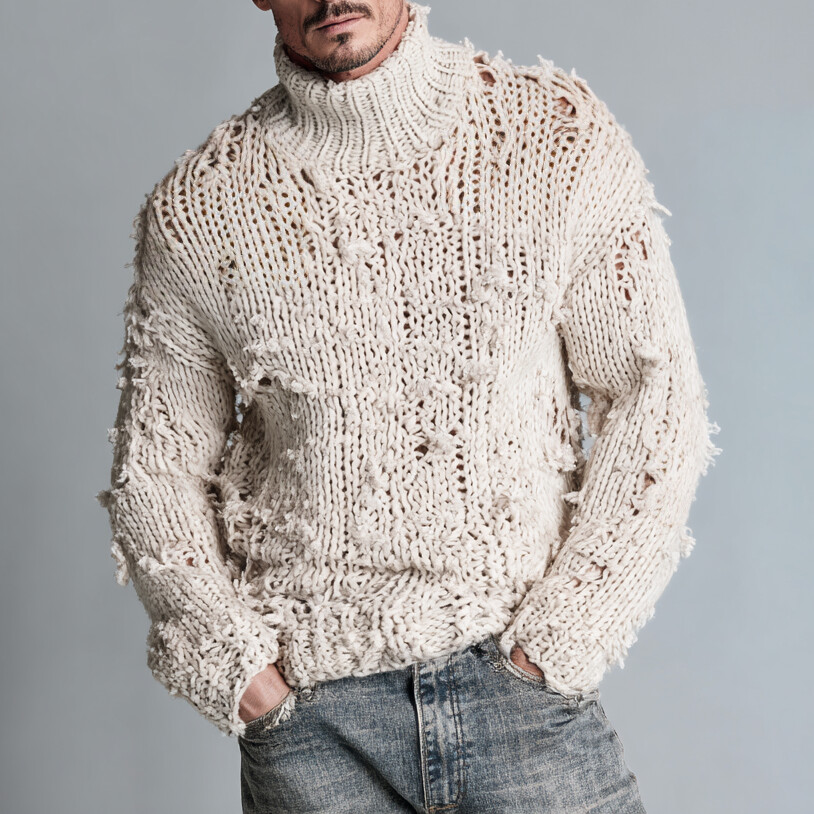Men's Stand Collar Long Sleeve Hollow Out Knitted Zip Up Jacket