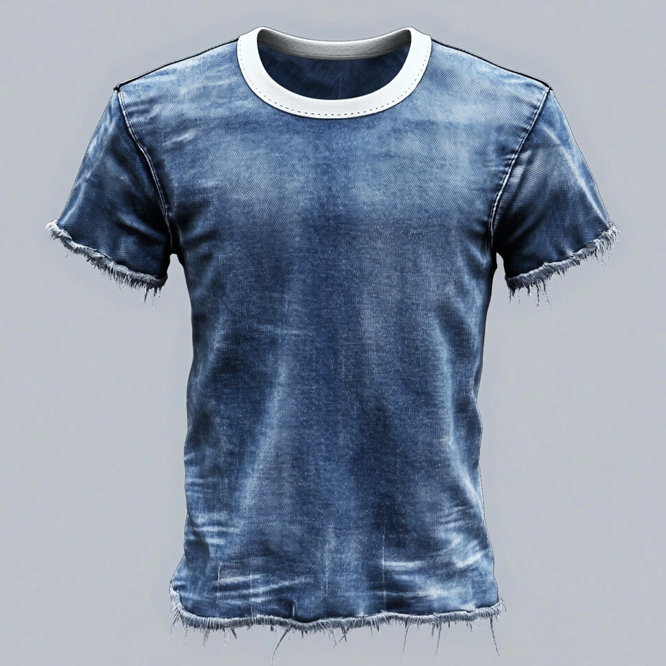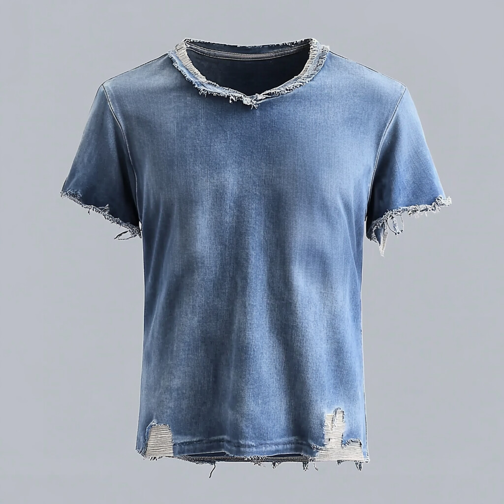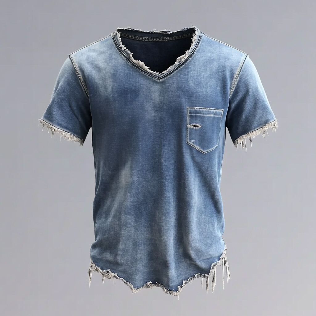 Men's Denim Solid V Neck Short Sleeve T-shirt
