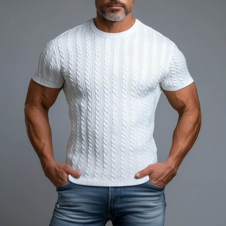 Men's Cable Knit Crew Neck Short Sleeve T-Shirt