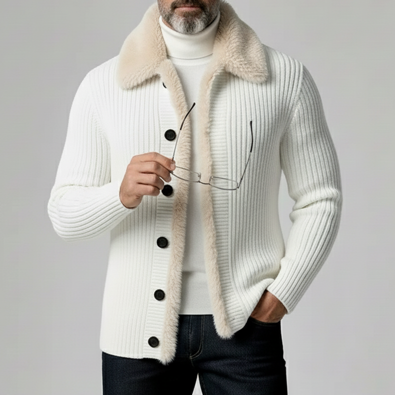 Men's Knit Patchwork PU Leather Long Sleeve Turtleneck Sweater