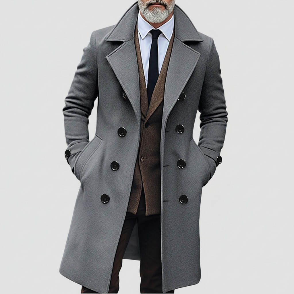Men's Business Khaki Notched Lapel Double Breasted Slant Pocket Long Sleeve Mid-Length Trench Coats
